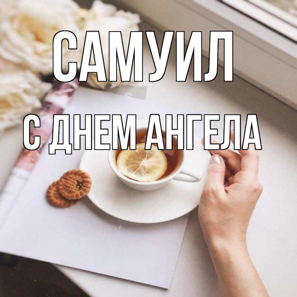 Открытка Самуил С днем ангела. чай с лимоном. и печеньками