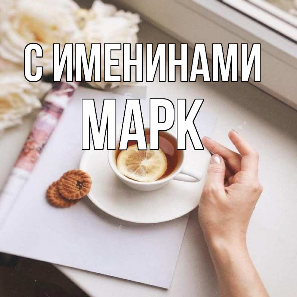 Открытка С именинами Марк. чай с лимоном. и печеньками
