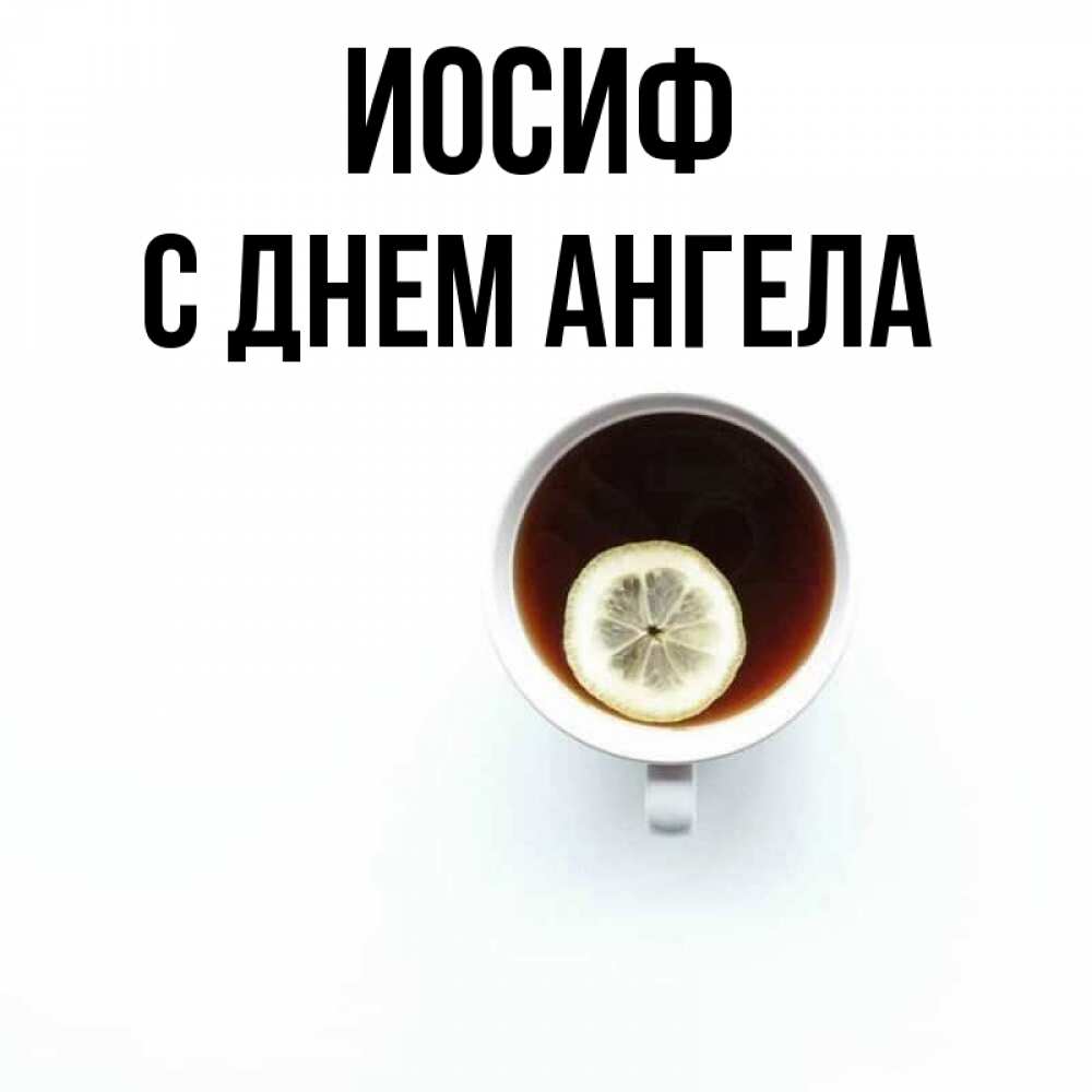 Открытка Иосиф С днем ангела. чай с лимоном на белом фоне. простая открытка