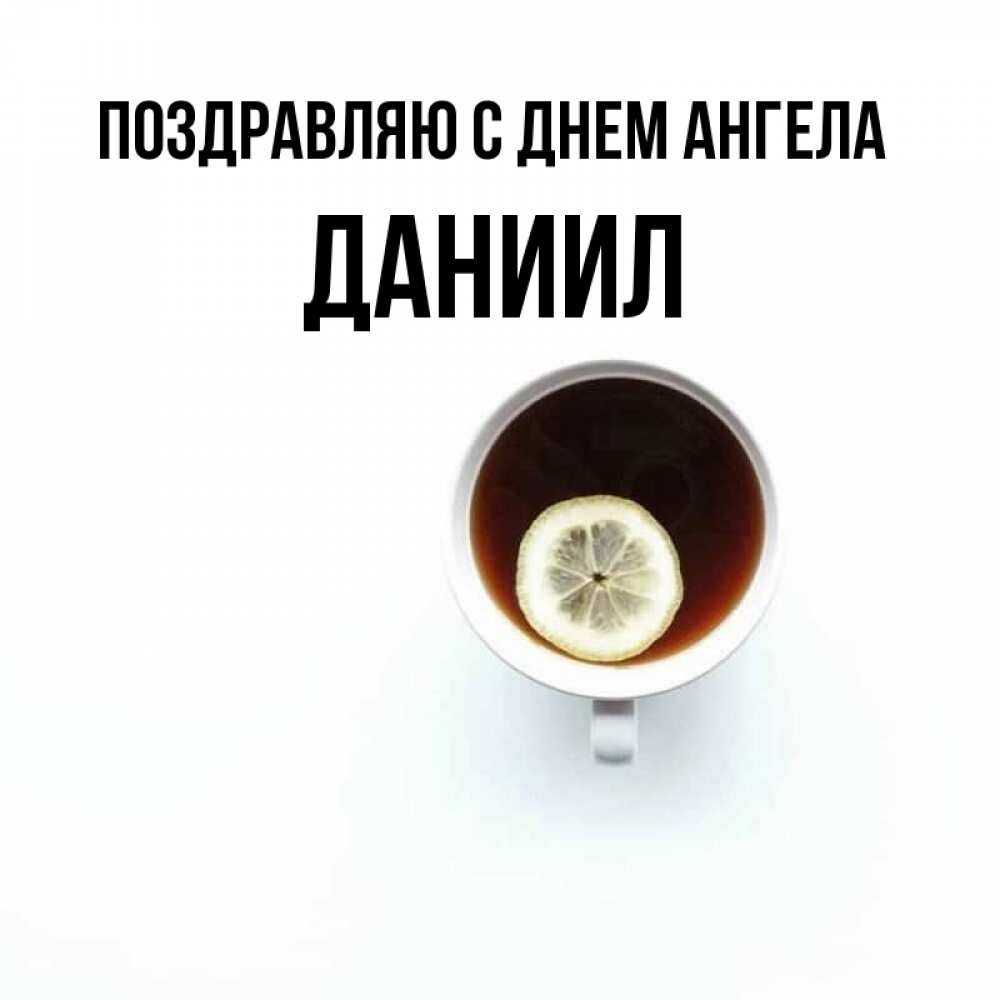 Открытка Поздравляю с днем Ангела Даниил. чай с лимоном на белом фоне. простая открытка