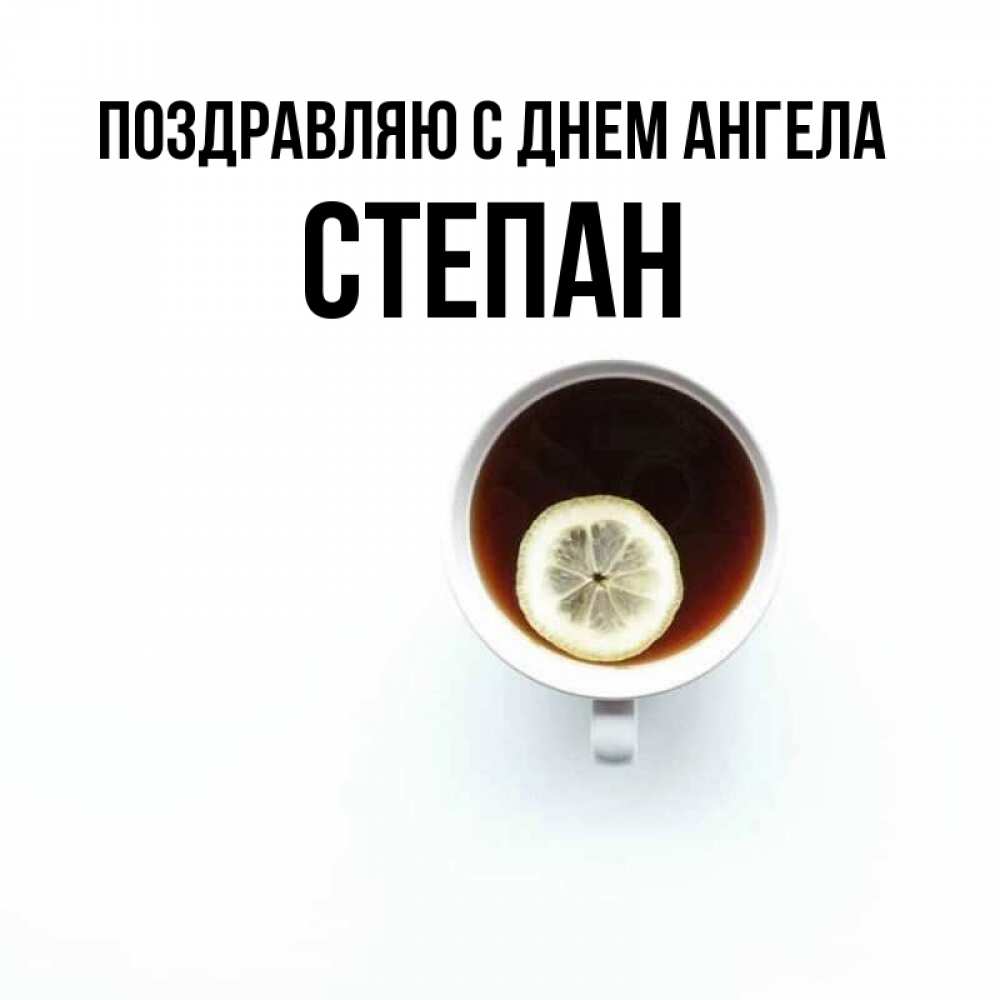 Открытка Поздравляю с днем Ангела Степан. чай с лимоном на белом фоне. простая открытка