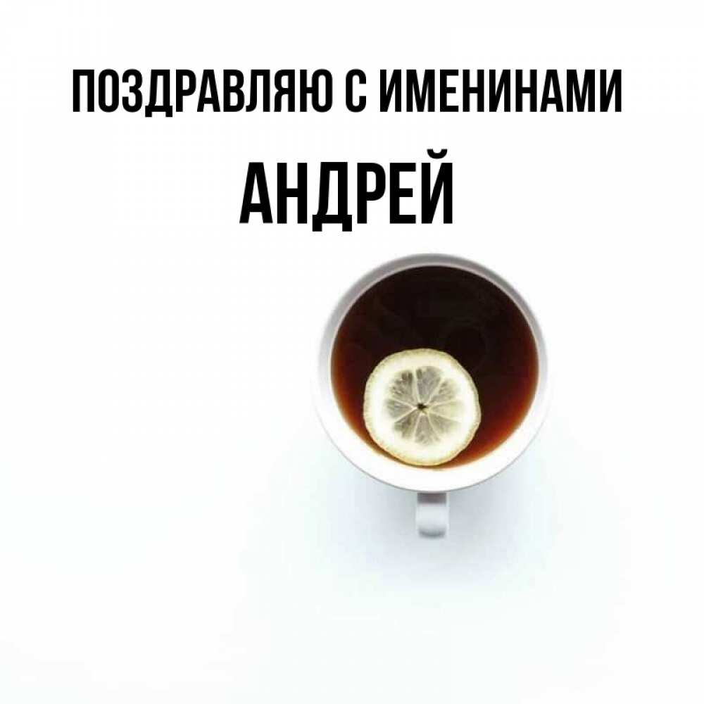 Открытка Поздравляю с именинами Андрей. чай с лимоном на белом фоне. простая открытка