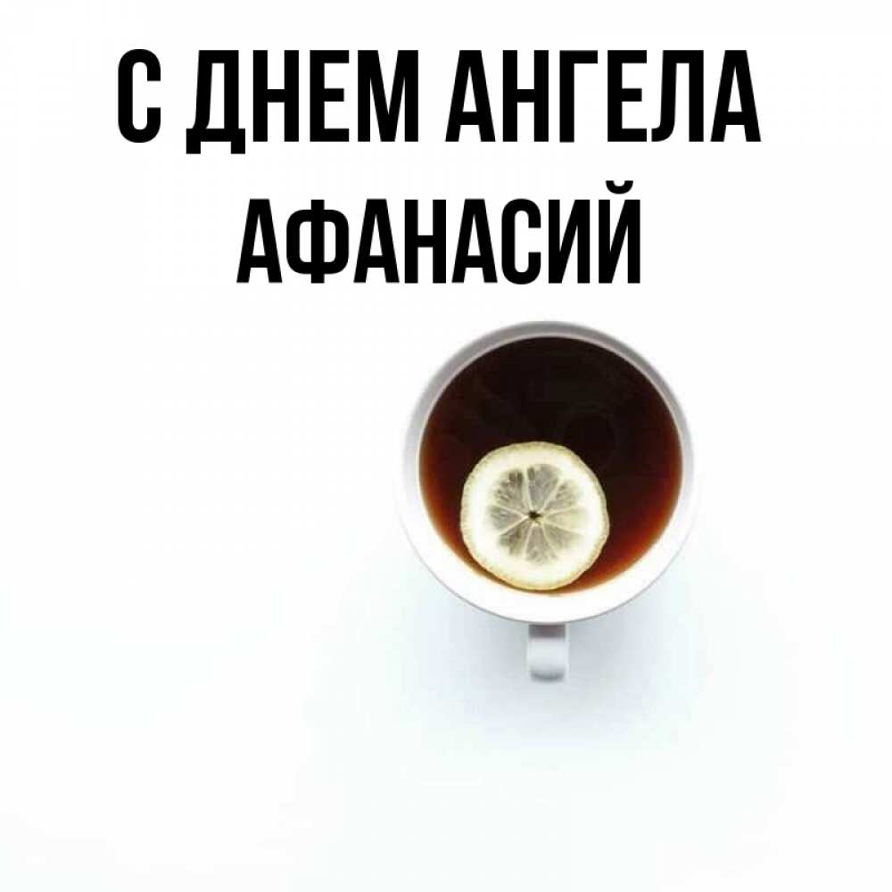Открытка С днем Ангела Афанасий. чай с лимоном на белом фоне. простая открытка
