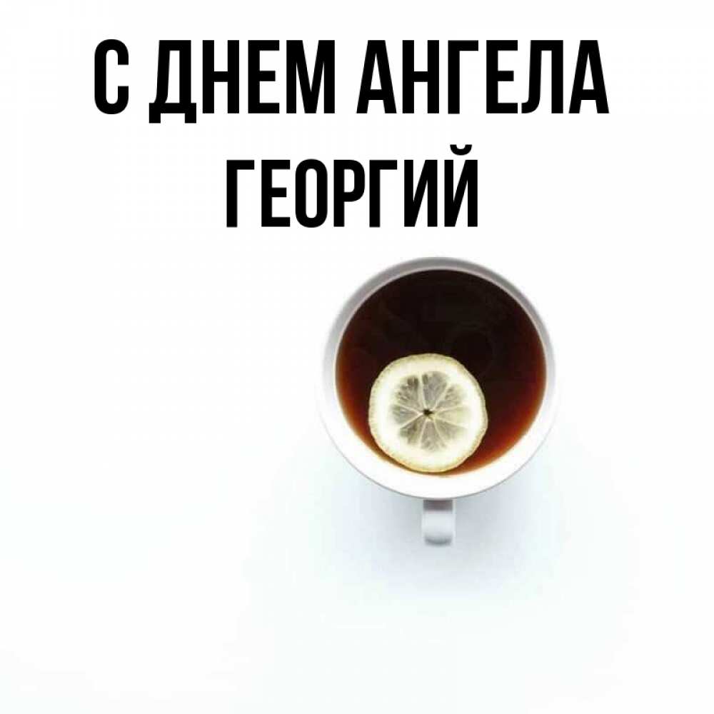 Открытка С днем Ангела Георгий. чай с лимоном на белом фоне. простая открытка