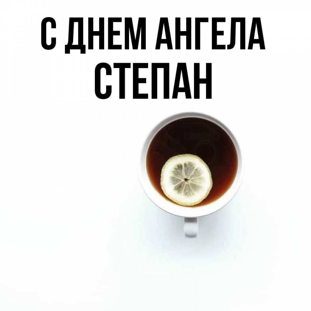 Открытка С днем Ангела Степан. чай с лимоном на белом фоне. простая открытка