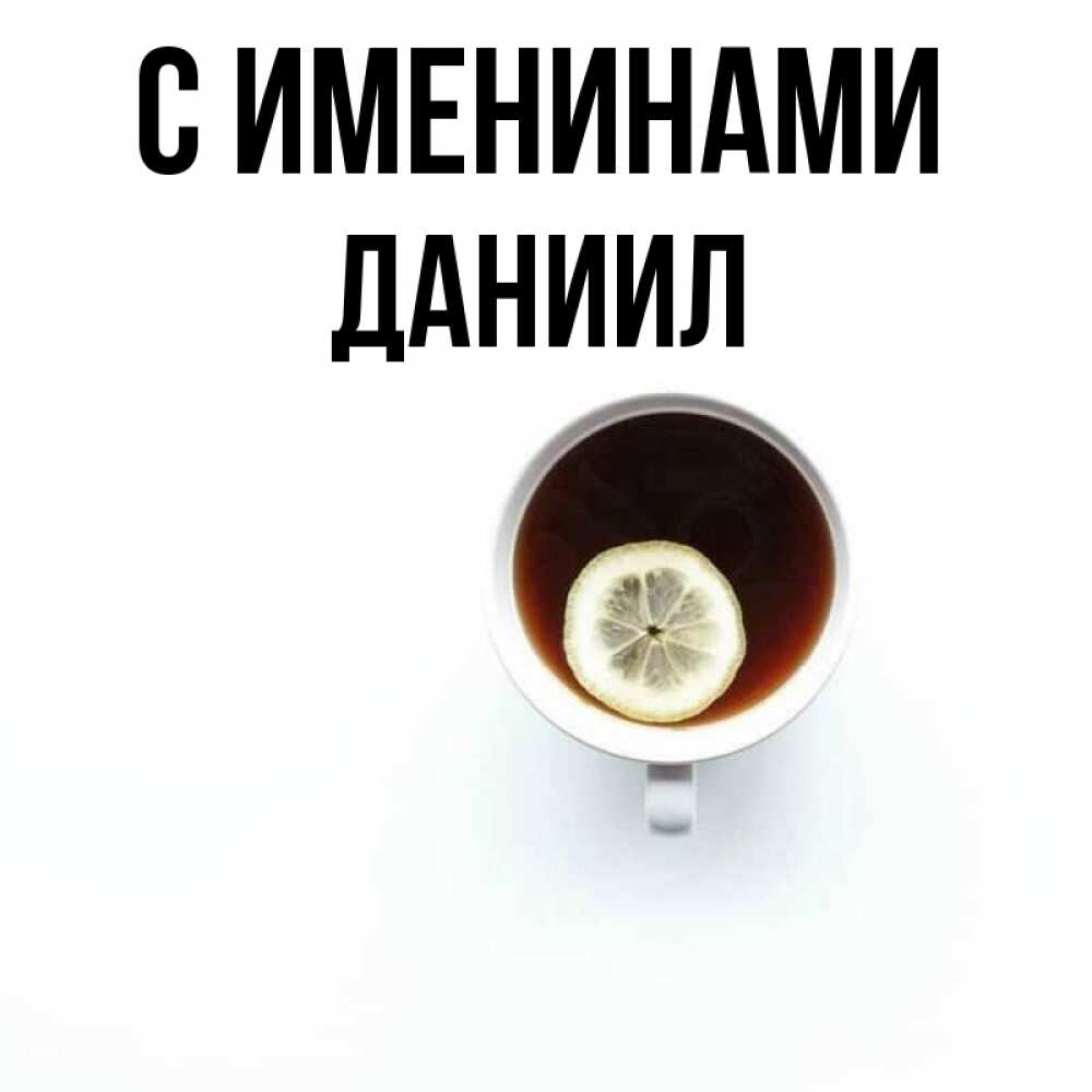 Открытка С именинами Даниил. чай с лимоном на белом фоне. простая открытка