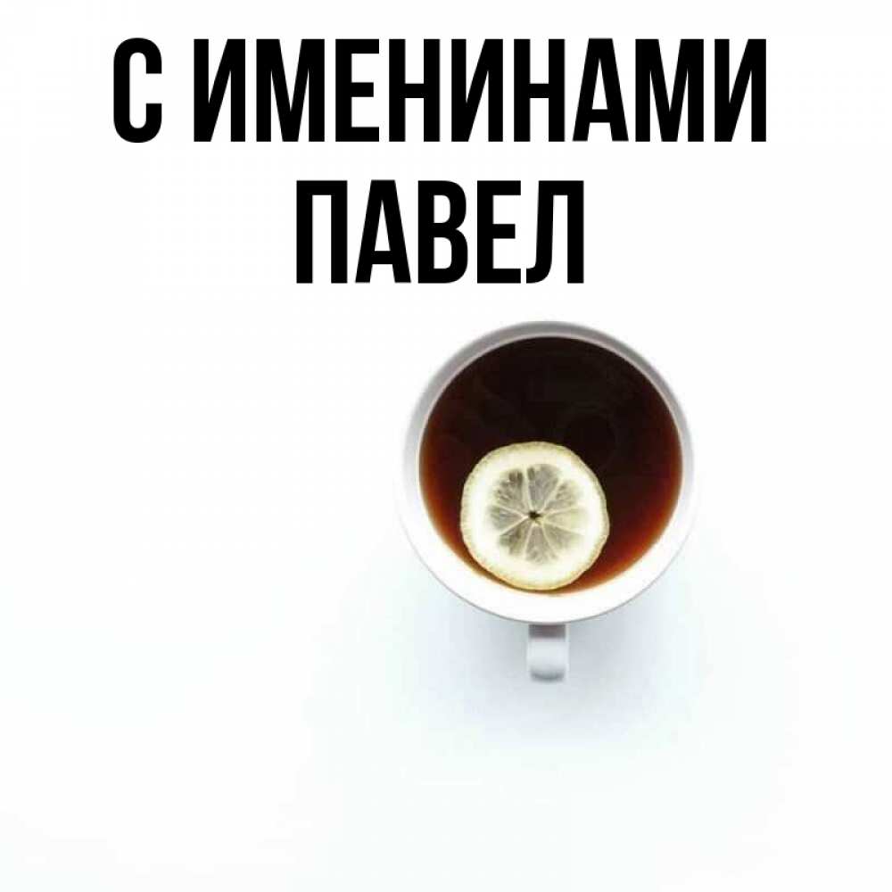 Открытка С именинами Павел. чай с лимоном на белом фоне. простая открытка