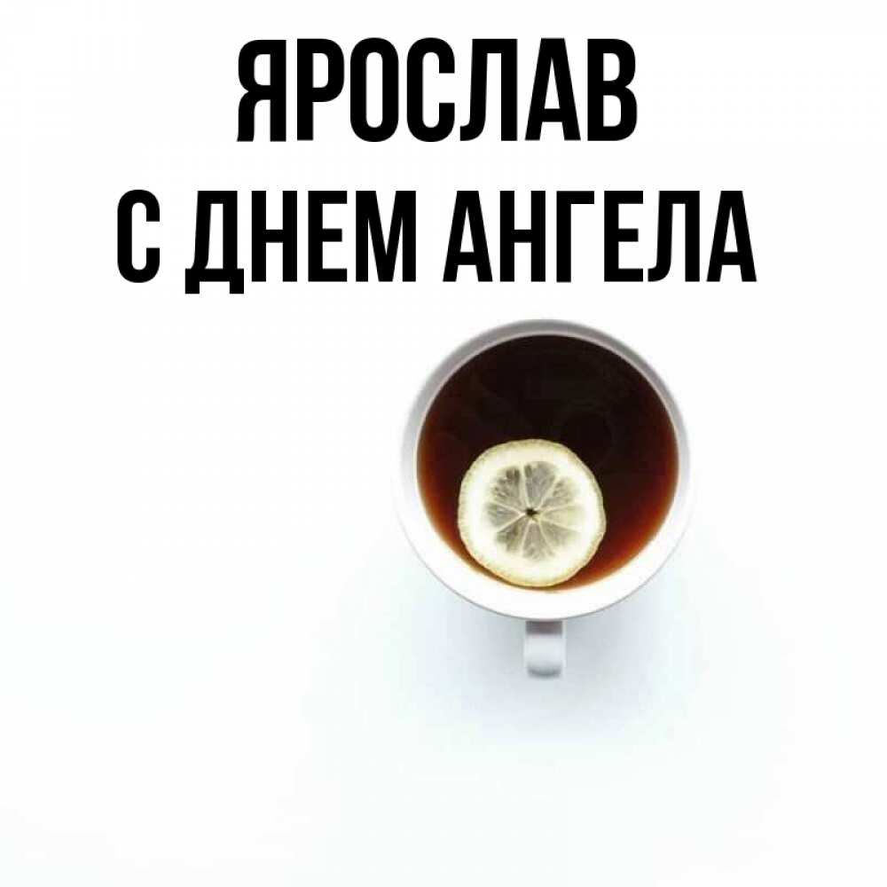 Открытка Ярослав С днем ангела. чай с лимоном на белом фоне. простая открытка