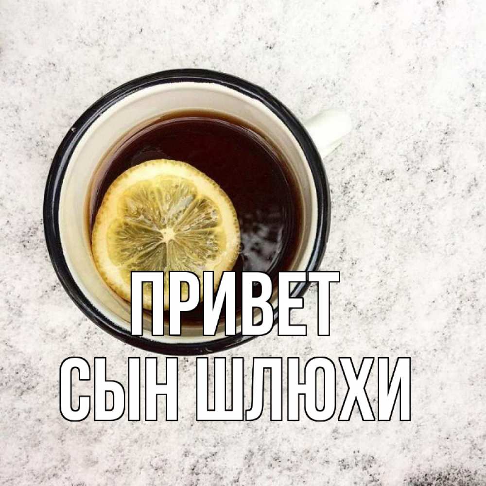 Открытка Привет Сын шлюхи. кружка чая и лимон. на мраморном столе