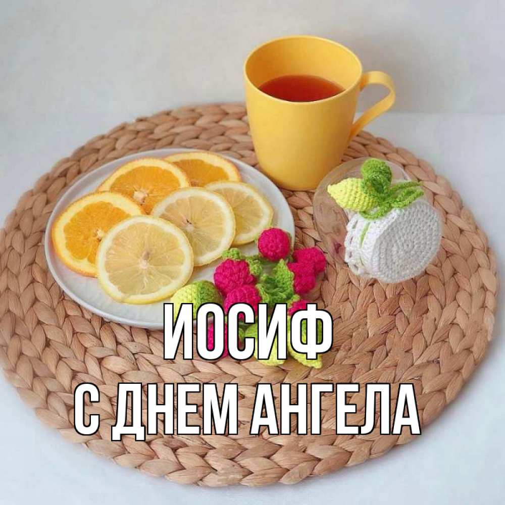 Открытка Иосиф С днем ангела. чай и лимон. вязаные штучки