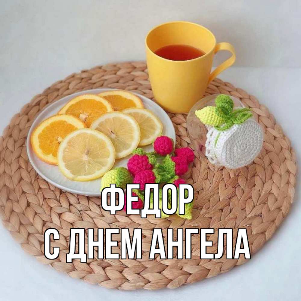 Открытка Федор С днем ангела. чай и лимон. вязаные штучки