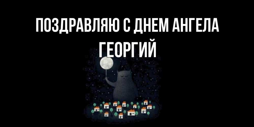 Открытка Поздравляю с днем Ангела Георгий. кот освещает город луной. кот,луна, ночь, звезды