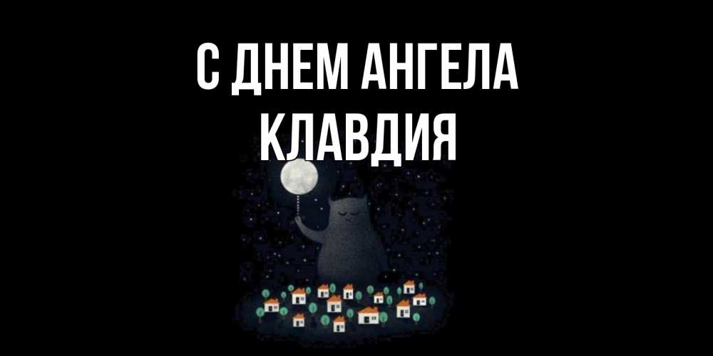 Открытка С днем Ангела Клавдия. кот освещает город луной. кот,луна, ночь, звезды
