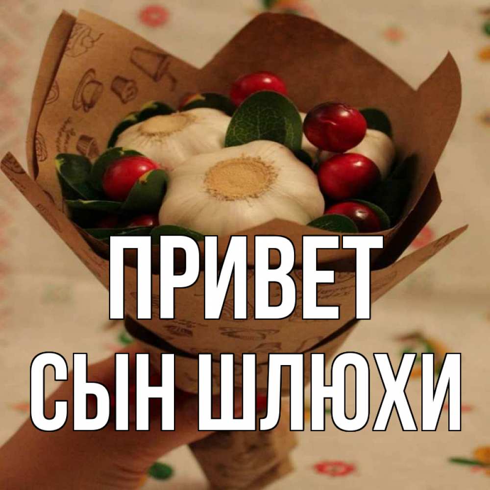 Открытка Привет Сын шлюхи. чеснок и клюква. букет из фитонцидов и витамина c