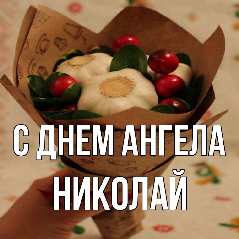 Открытка С днем Ангела Николай. чеснок и клюква. букет из фитонцидов и витамина c