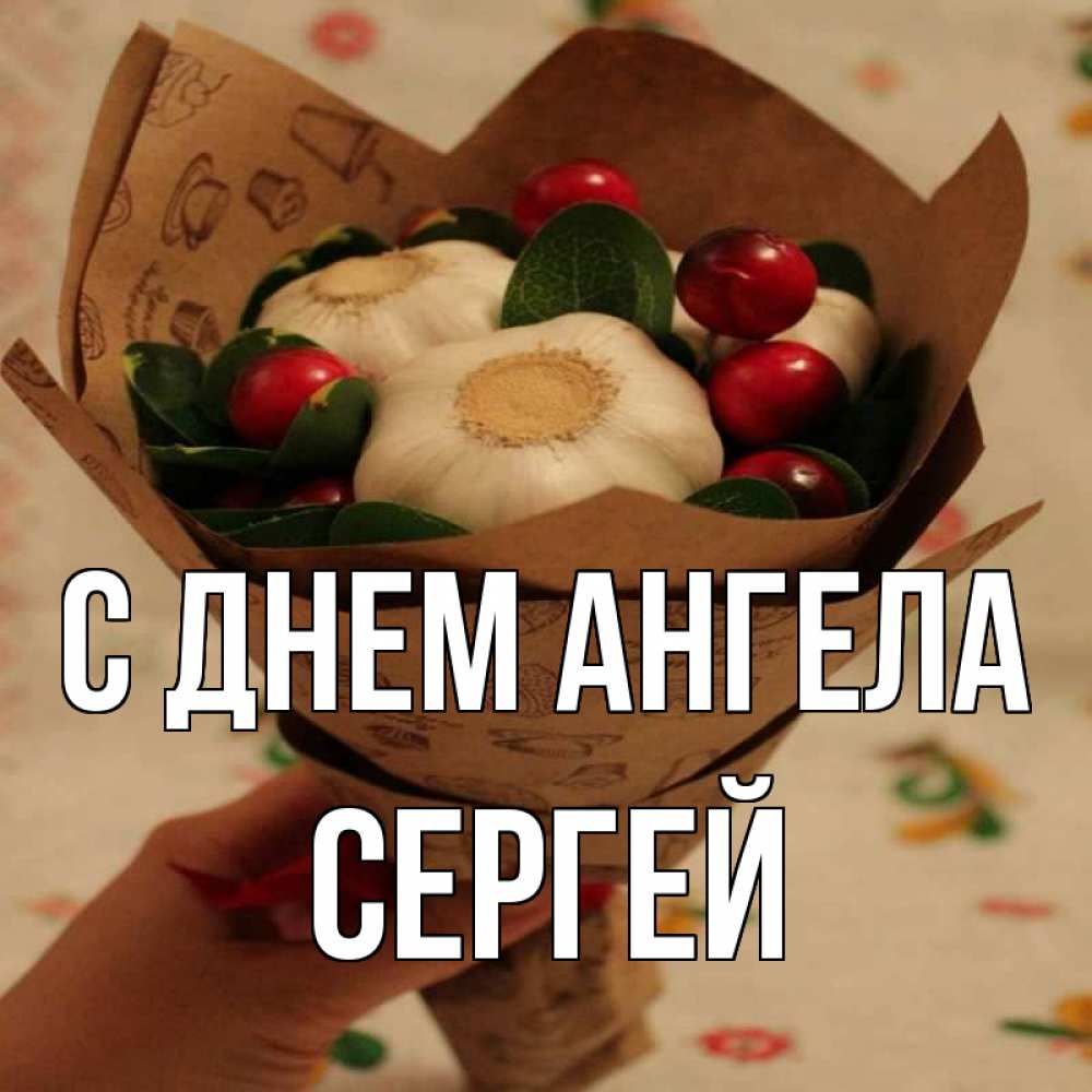 Открытка С днем Ангела Сергей. чеснок и клюква. букет из фитонцидов и витамина c