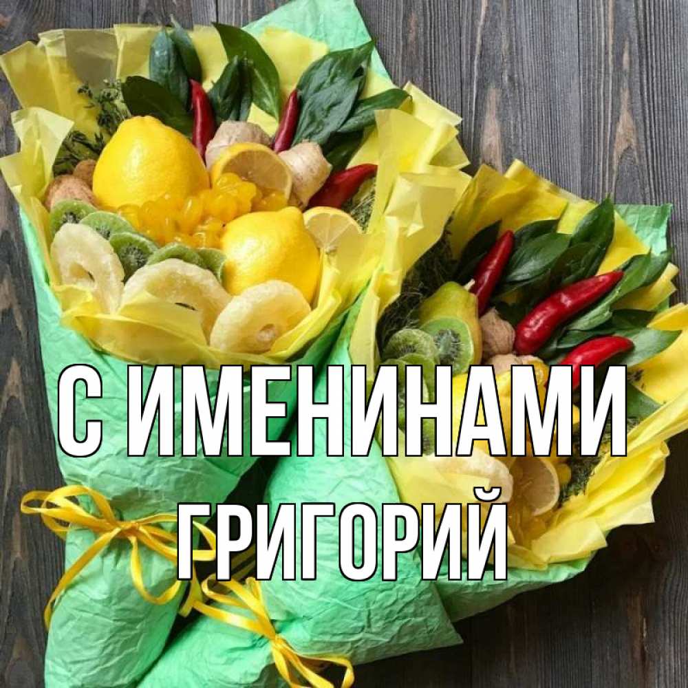 Открытка С именинами Григорий. два полезных букета. для скорейшего выздоровления