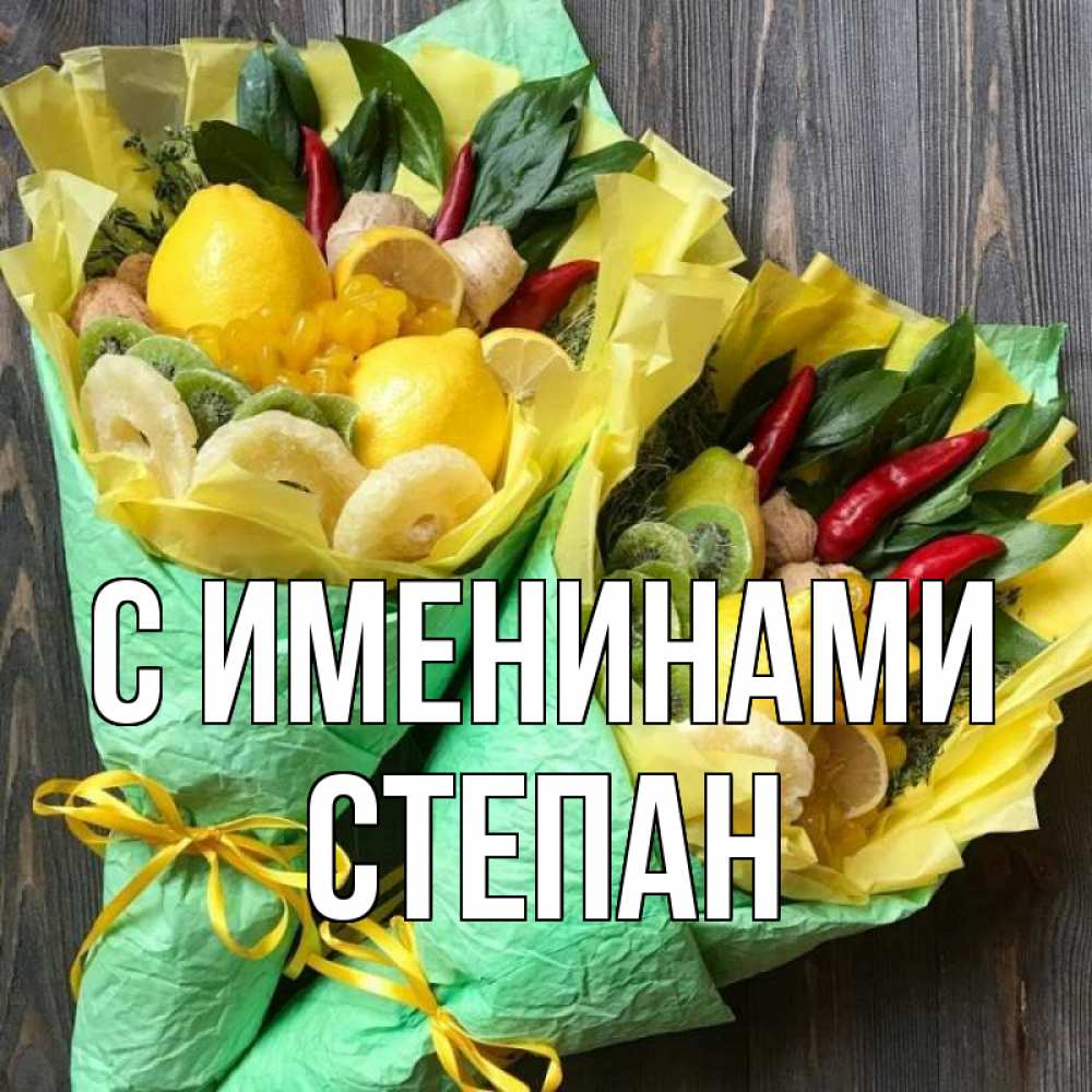 Открытка С именинами Степан. два полезных букета. для скорейшего выздоровления