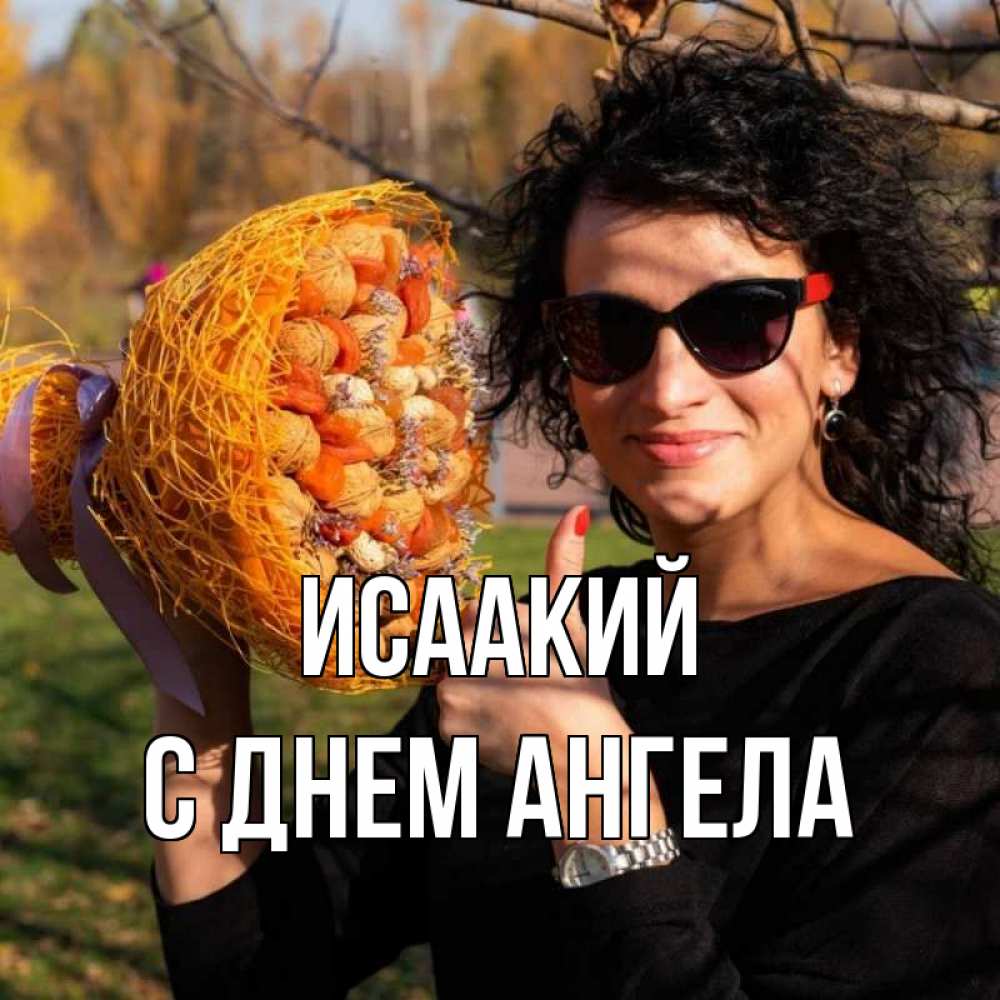Открытка Исаакий С днем ангела. страшная тетка рекомендуете не болеть. что то там у нее в букете