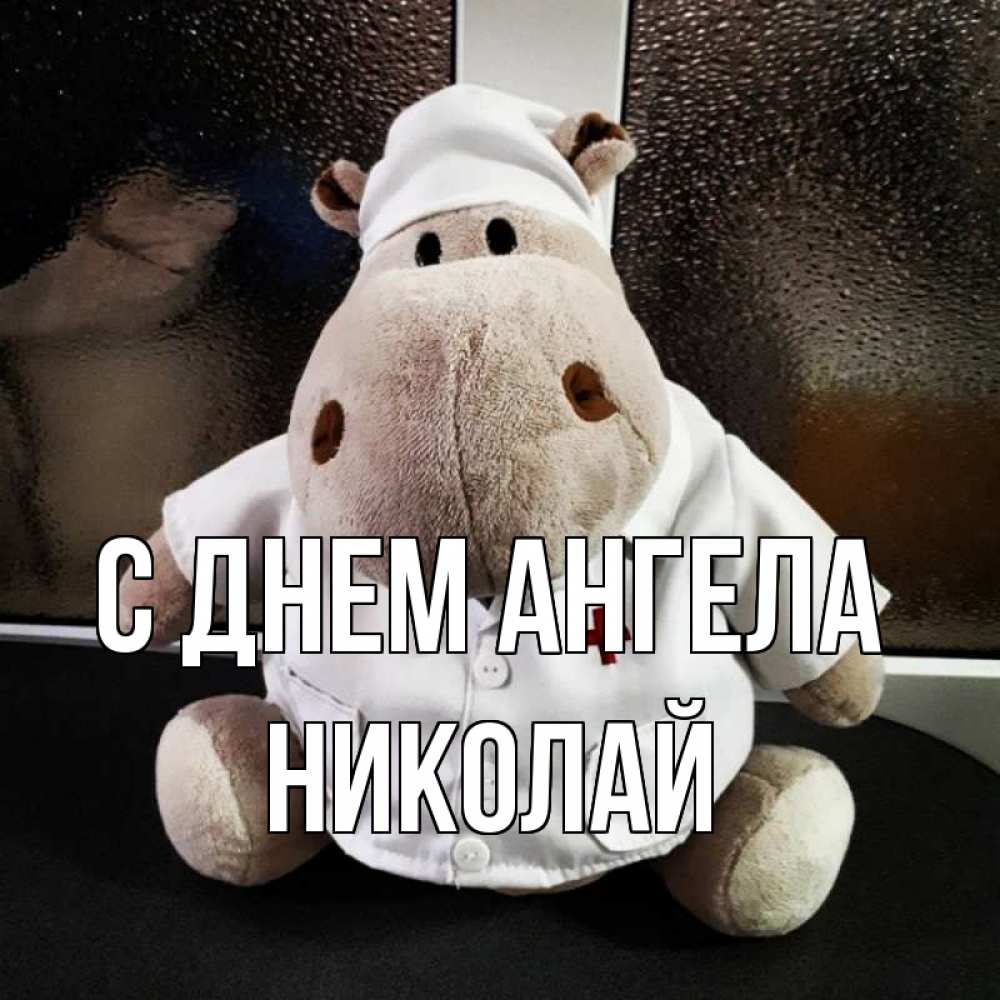 Открытка С днем Ангела Николай. бегемотик спешит на помощь. всех излечит исцелит