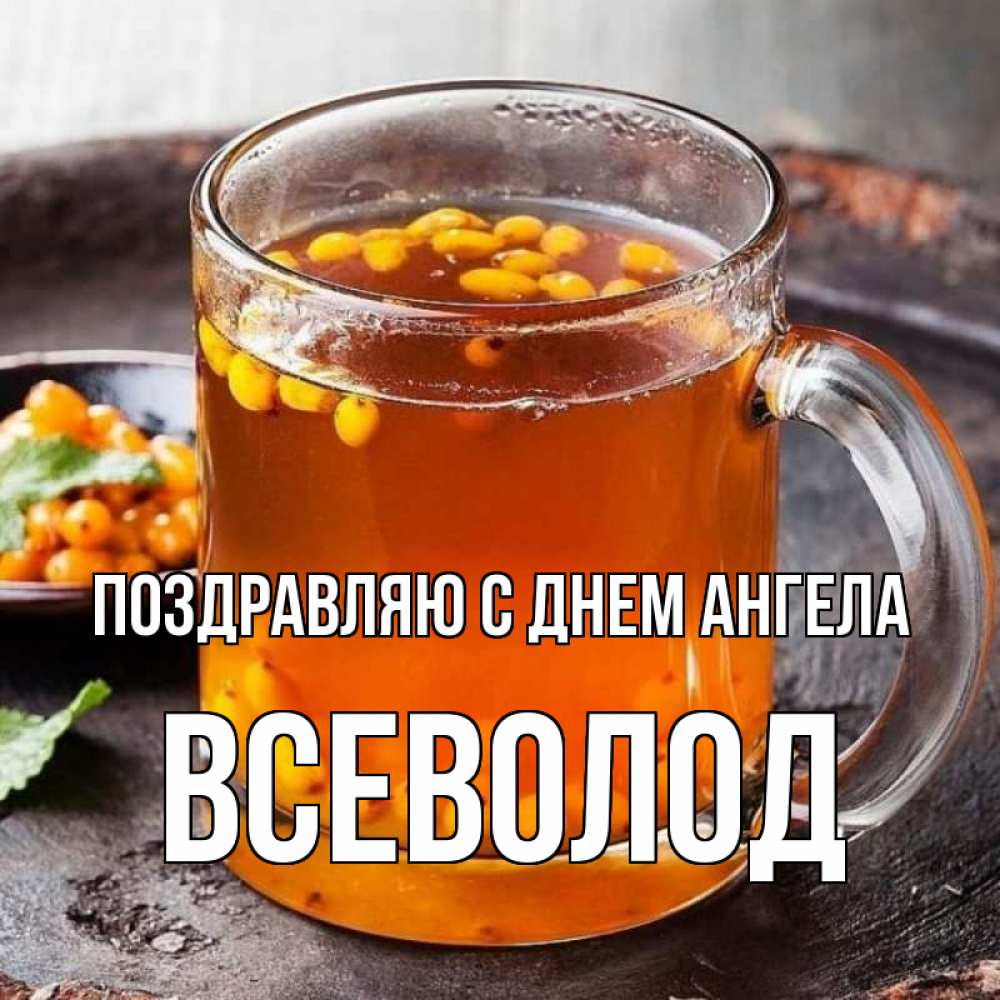Открытка Поздравляю с днем Ангела Всеволод. облепиховый чай. лекарство от простуды