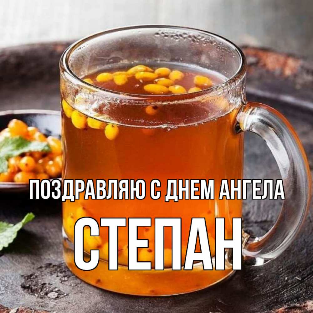 Открытка Поздравляю с днем Ангела Степан. облепиховый чай. лекарство от простуды