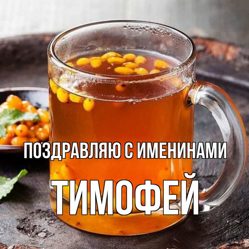 Открытка Поздравляю с именинами Тимофей. облепиховый чай. лекарство от простуды