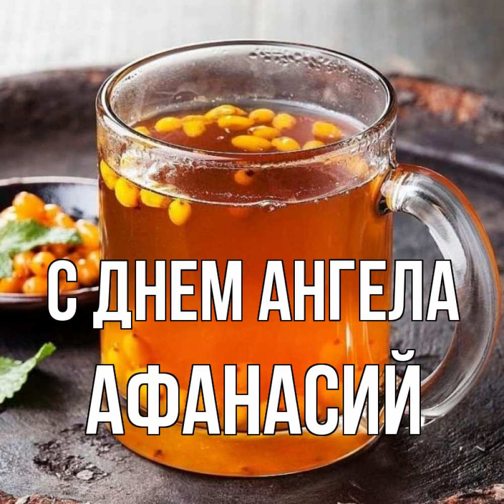 Открытка С днем Ангела Афанасий. облепиховый чай. лекарство от простуды