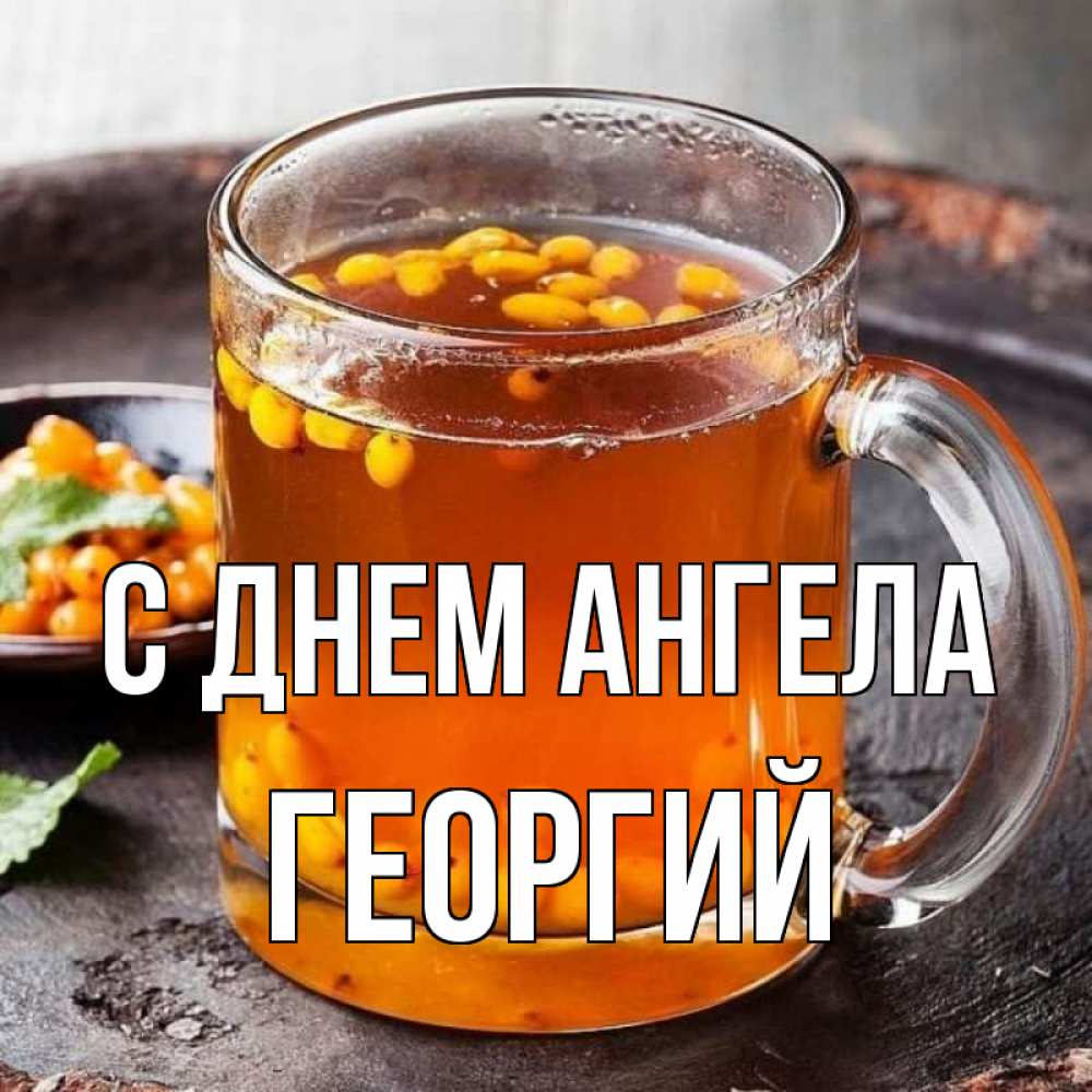 Открытка С днем Ангела Георгий. облепиховый чай. лекарство от простуды
