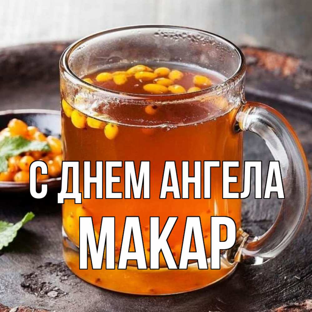 Открытка С днем Ангела Макар. облепиховый чай. лекарство от простуды