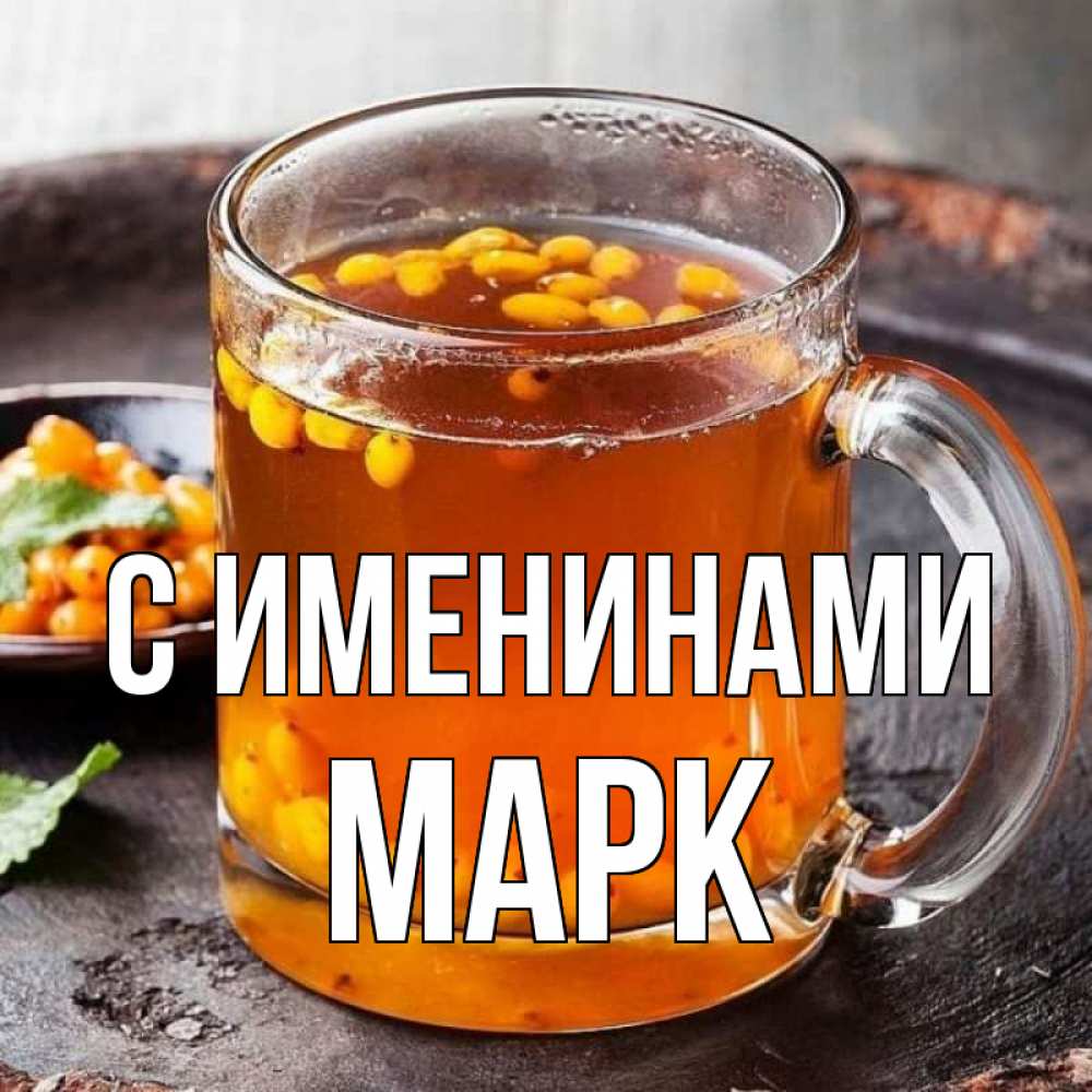 Открытка С именинами Марк. облепиховый чай. лекарство от простуды