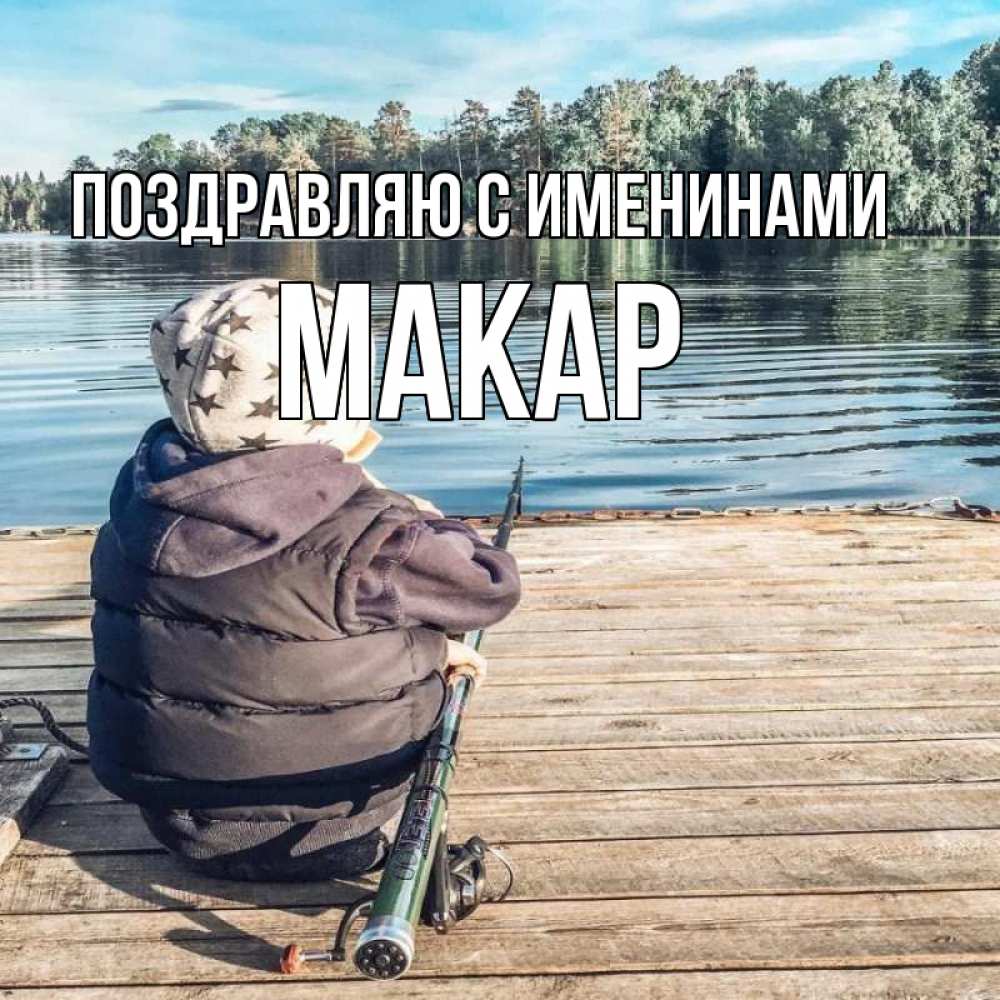 Открытка Поздравляю с именинами Макар. надо быть на свежем воздухе чтобы не болеть. рыбалка