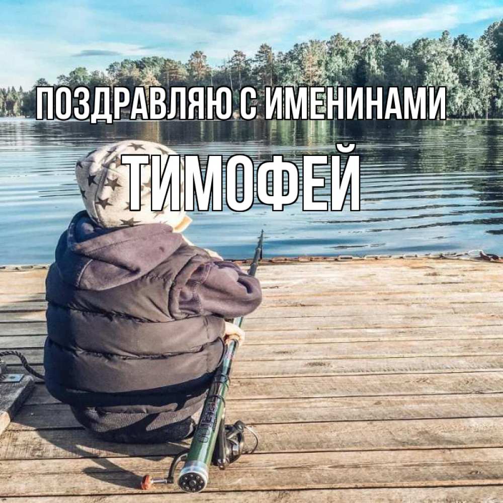 Открытка Поздравляю с именинами Тимофей. надо быть на свежем воздухе чтобы не болеть. рыбалка