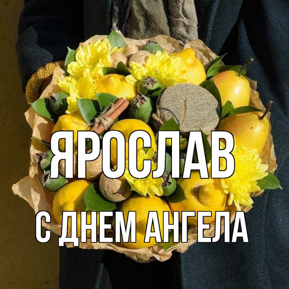 Открытка Ярослав С днем ангела. желтые цветы и лимоны. букет витаминов