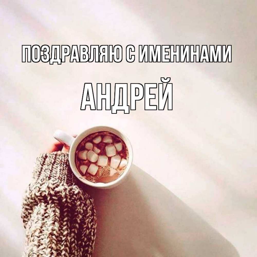 Открытка Поздравляю с именинами Андрей. чай и вкусня. рука в свитре