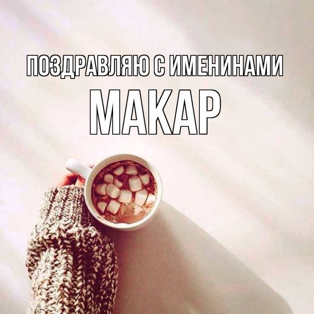 Открытка Поздравляю с именинами Макар. чай и вкусня. рука в свитре