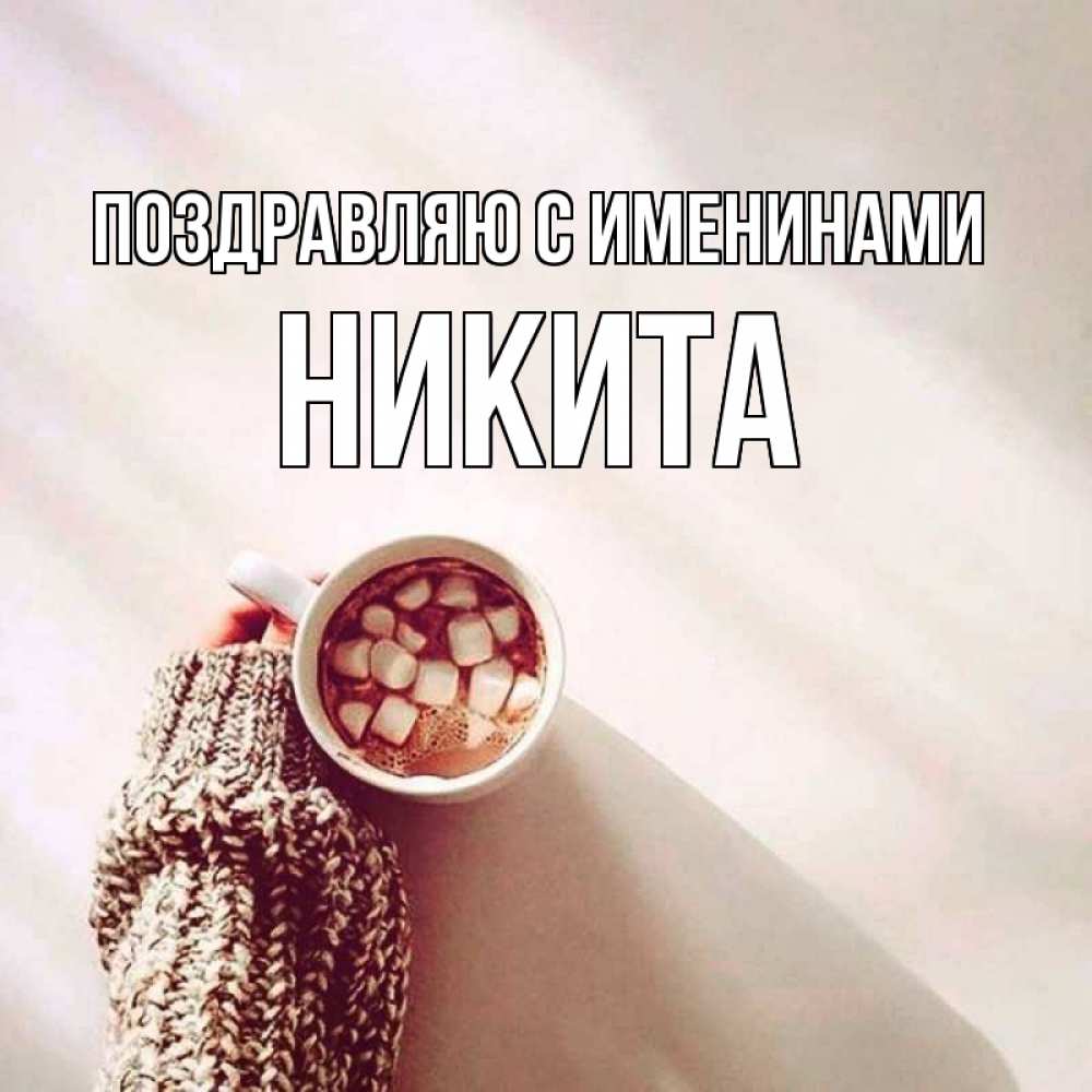 Открытка Поздравляю с именинами Никита. чай и вкусня. рука в свитре