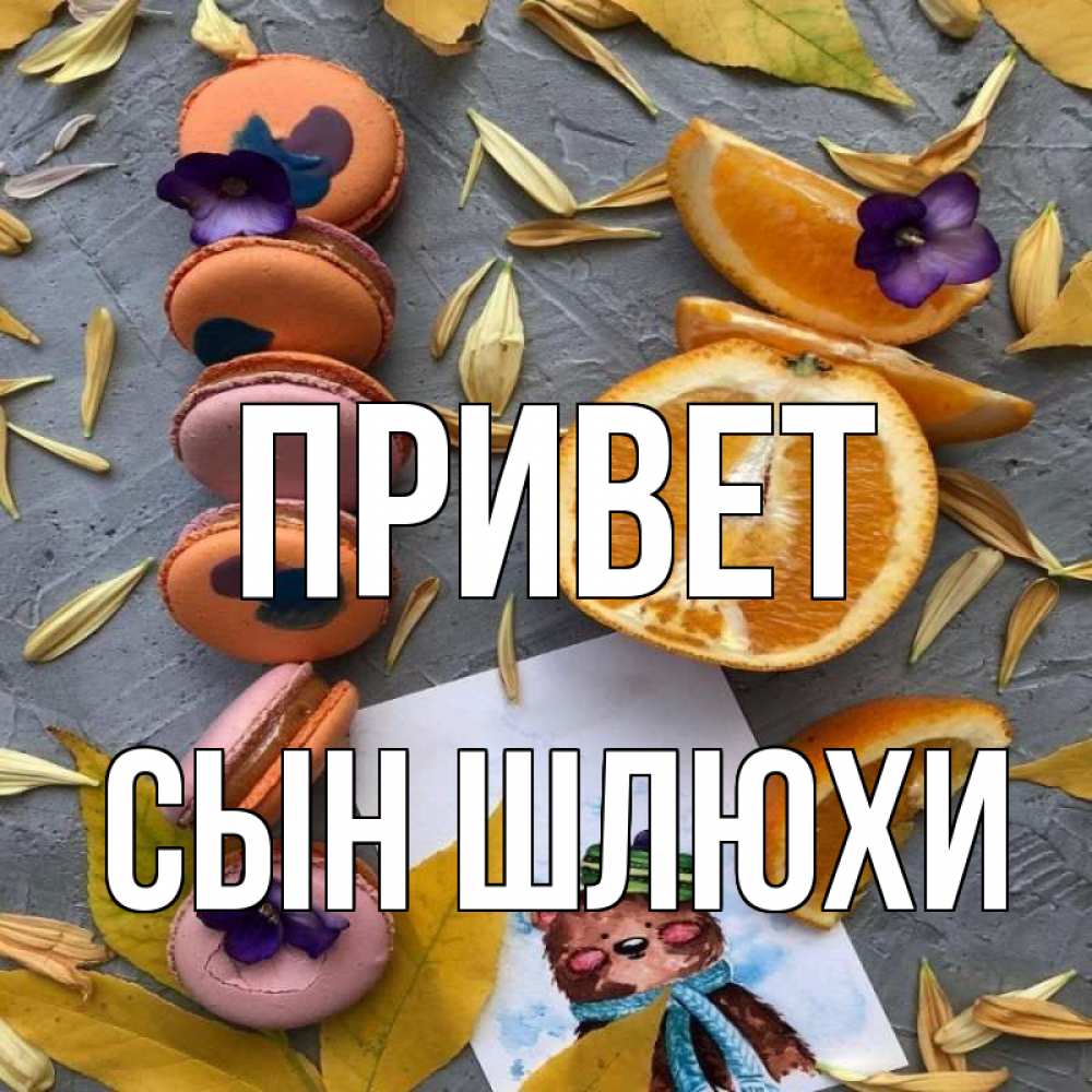 Открытка Привет Сын шлюхи. печенюхи и апельсин. не болейте