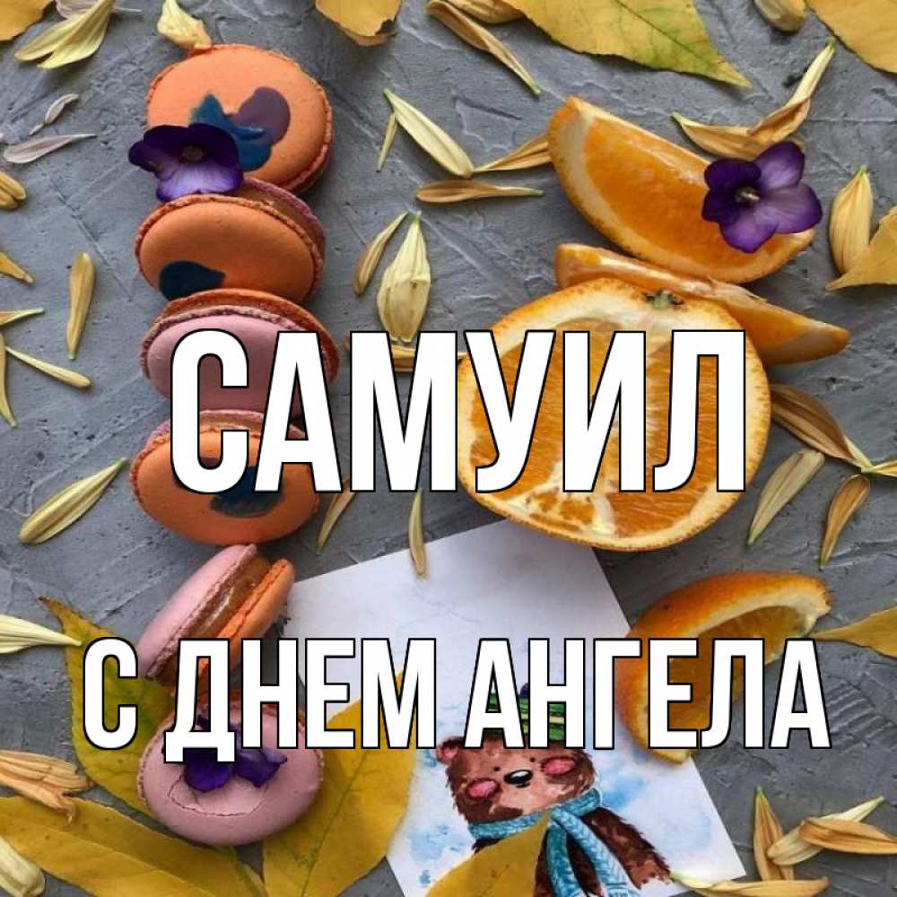 Открытка Самуил С днем ангела. печенюхи и апельсин. не болейте