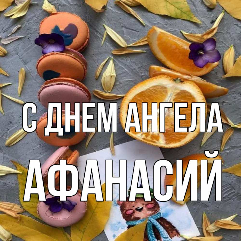 Открытка С днем Ангела Афанасий. печенюхи и апельсин. не болейте
