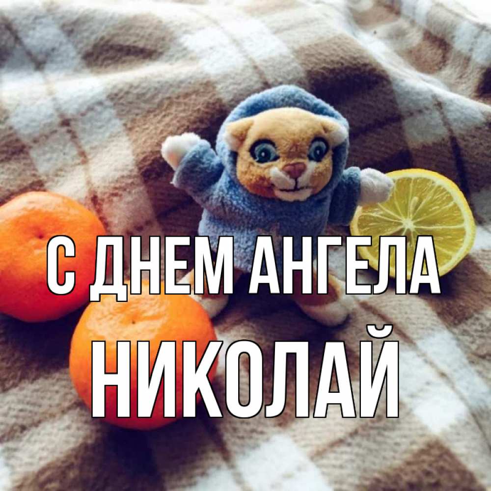 Открытка С днем Ангела Николай. тигра желает не болеть. вот тебе апельсинка и лимон
