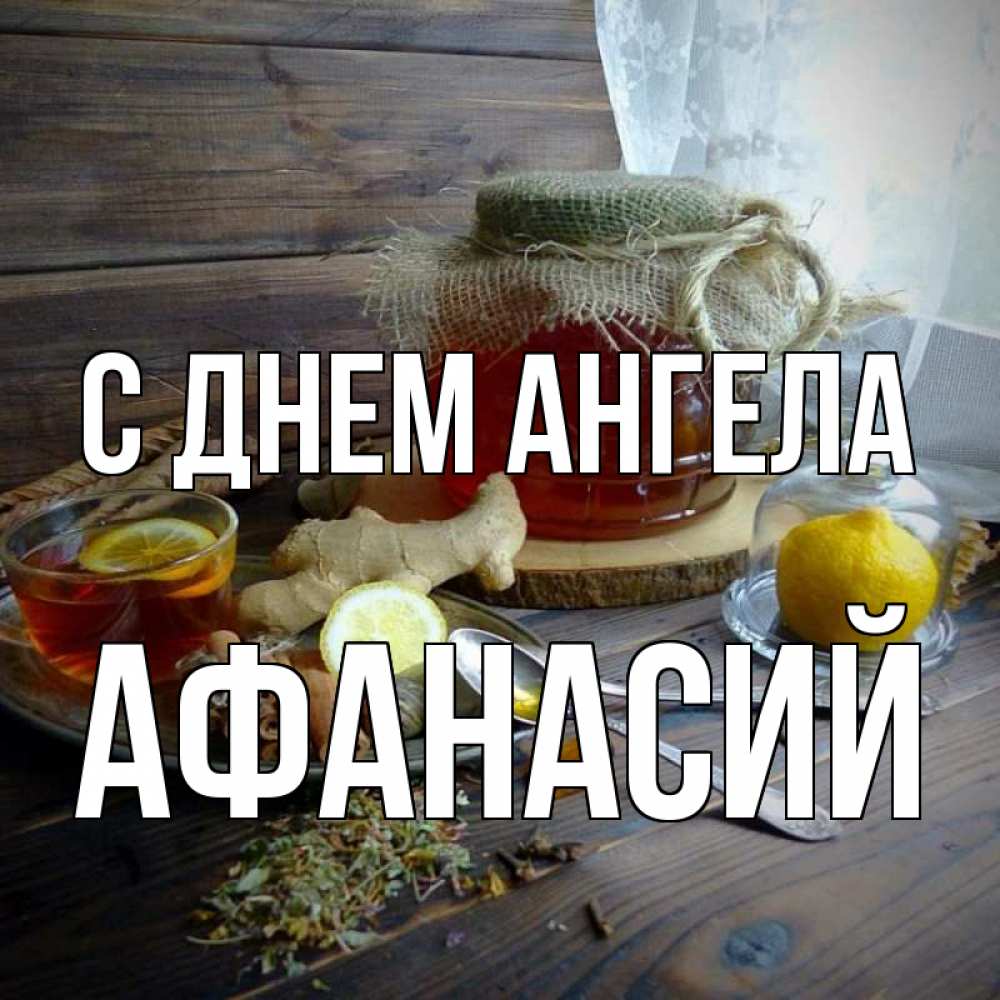 Открытка С днем Ангела Афанасий. мед и лимон от простуды. банка с медом