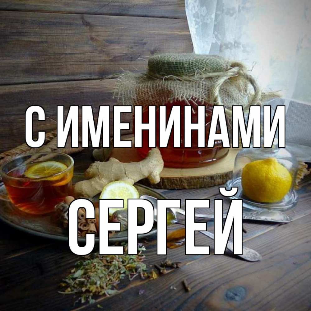 Открытка С именинами Сергей. мед и лимон от простуды. банка с медом