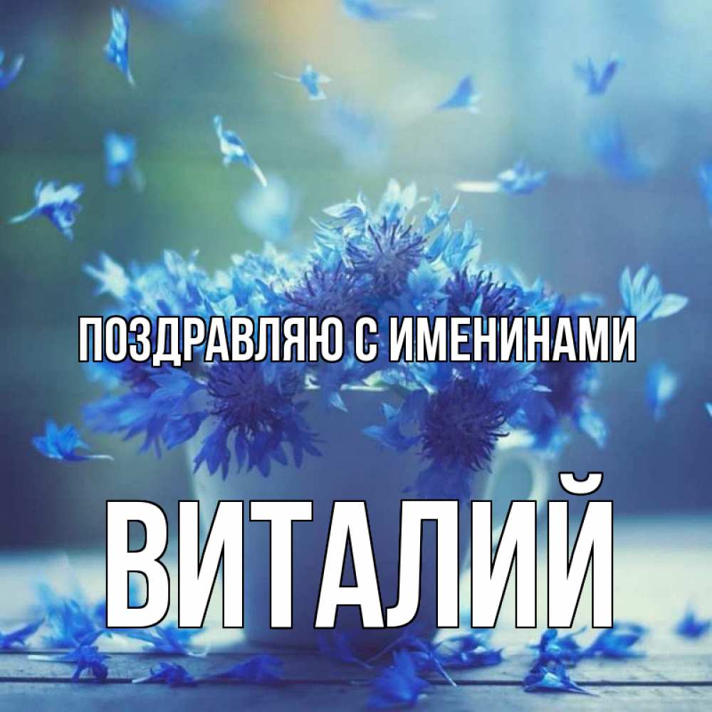 Открытка Поздравляю с именинами Виталий. видимо эти цветы лечат простуду. кружка с зельем и цветами