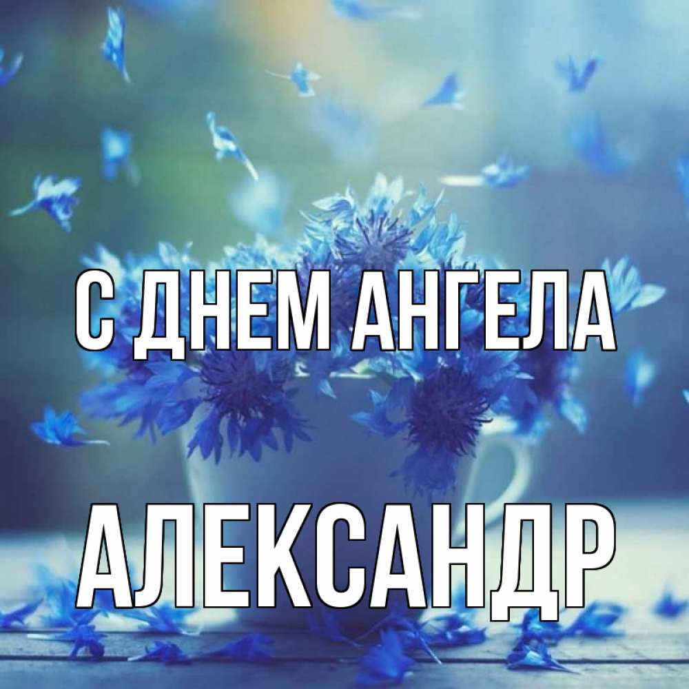 Открытка С днем Ангела Александр. видимо эти цветы лечат простуду. кружка с зельем и цветами