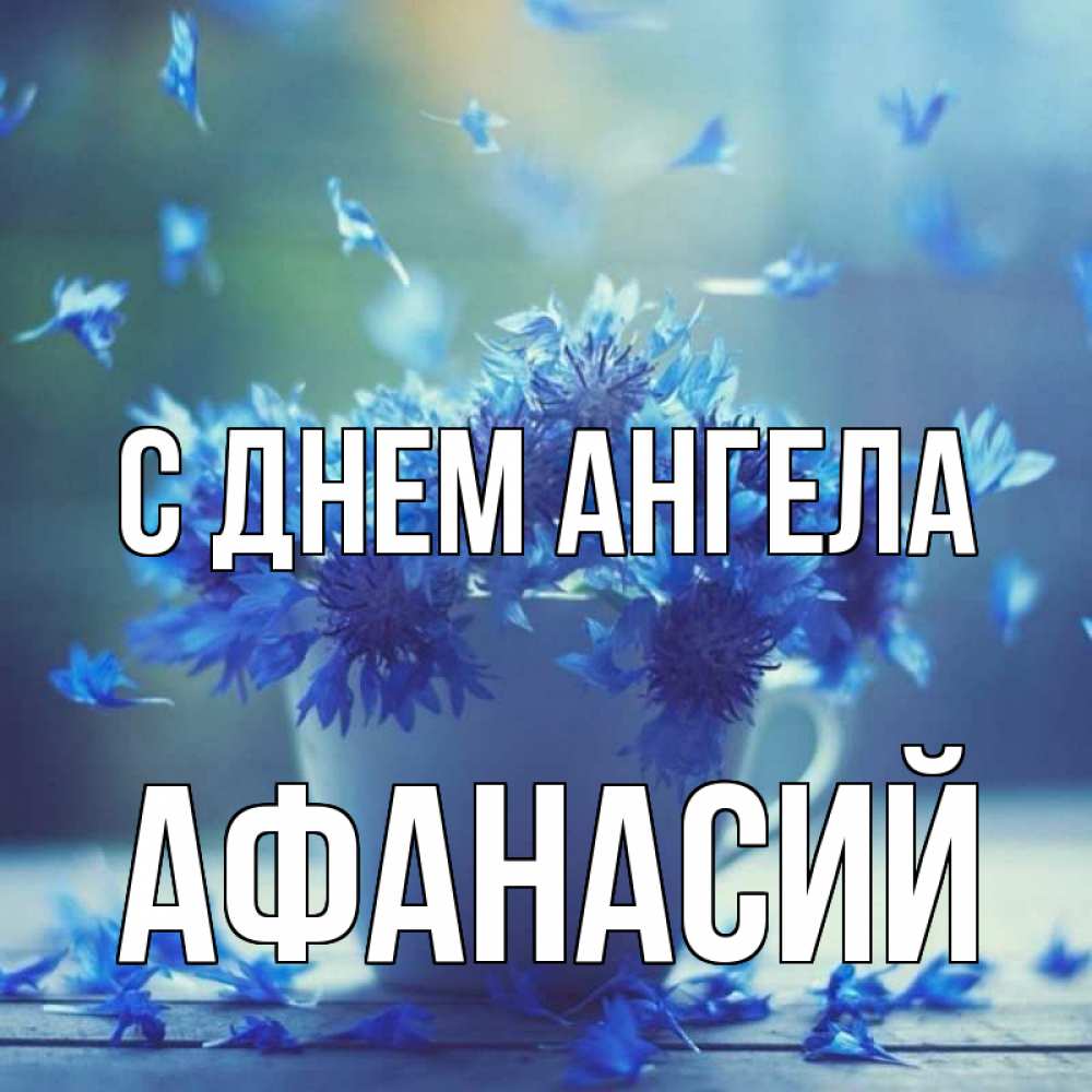 Открытка С днем Ангела Афанасий. видимо эти цветы лечат простуду. кружка с зельем и цветами