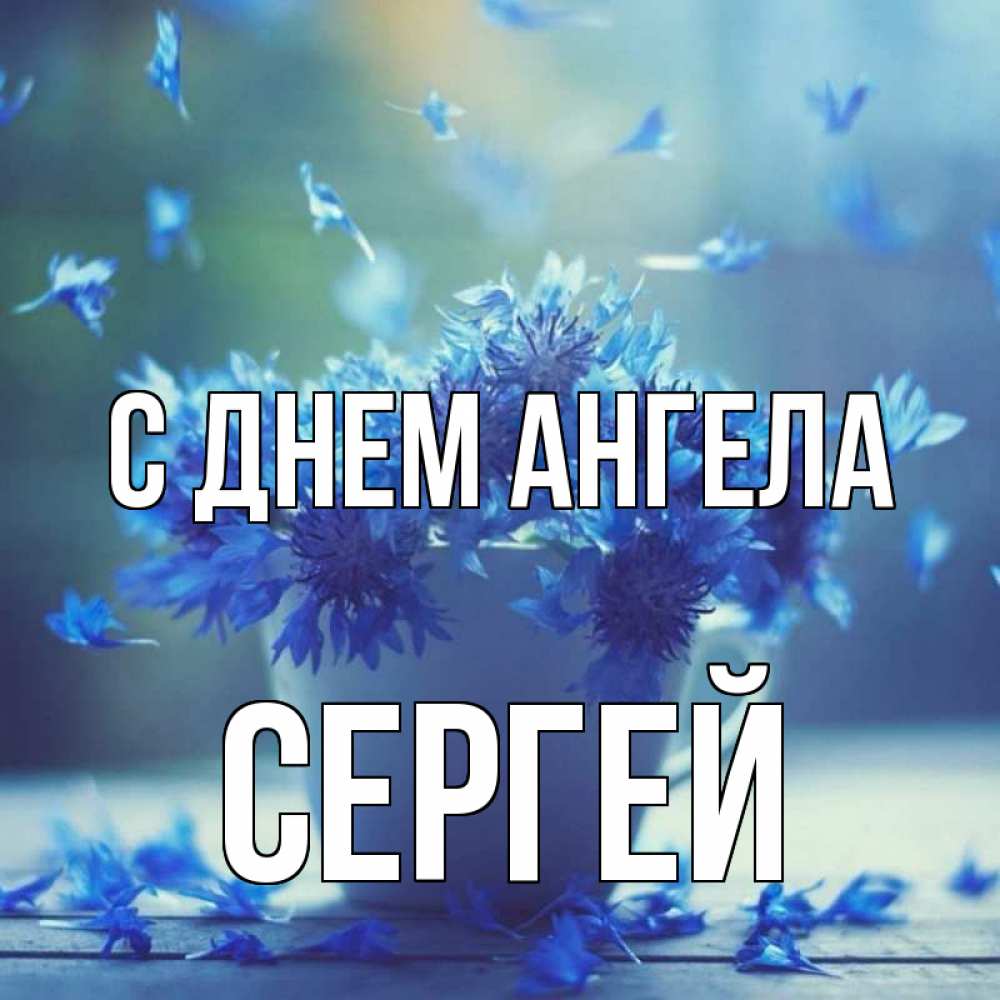 Открытка С днем Ангела Сергей. видимо эти цветы лечат простуду. кружка с зельем и цветами