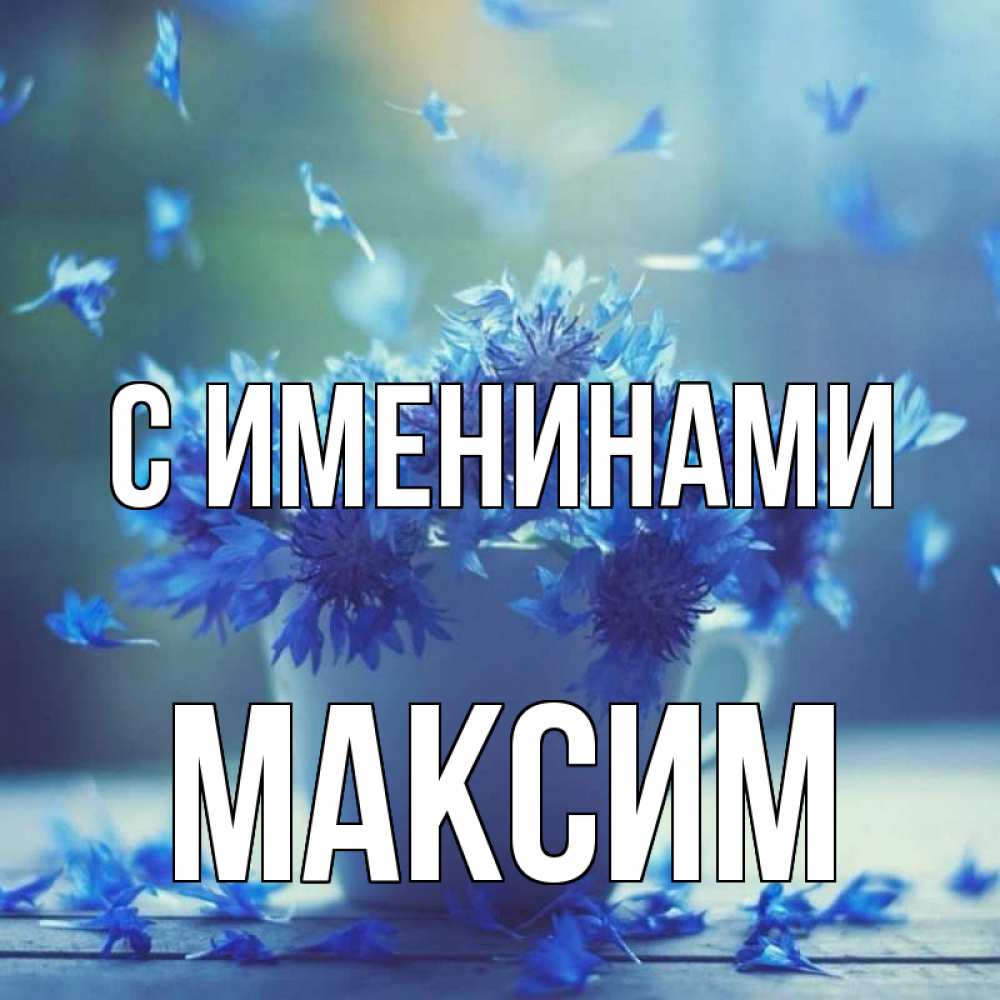 Открытка С именинами Максим. видимо эти цветы лечат простуду. кружка с зельем и цветами