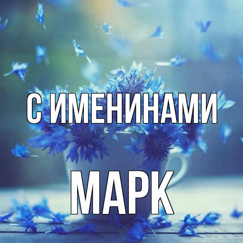 Открытка С именинами Марк. видимо эти цветы лечат простуду. кружка с зельем и цветами