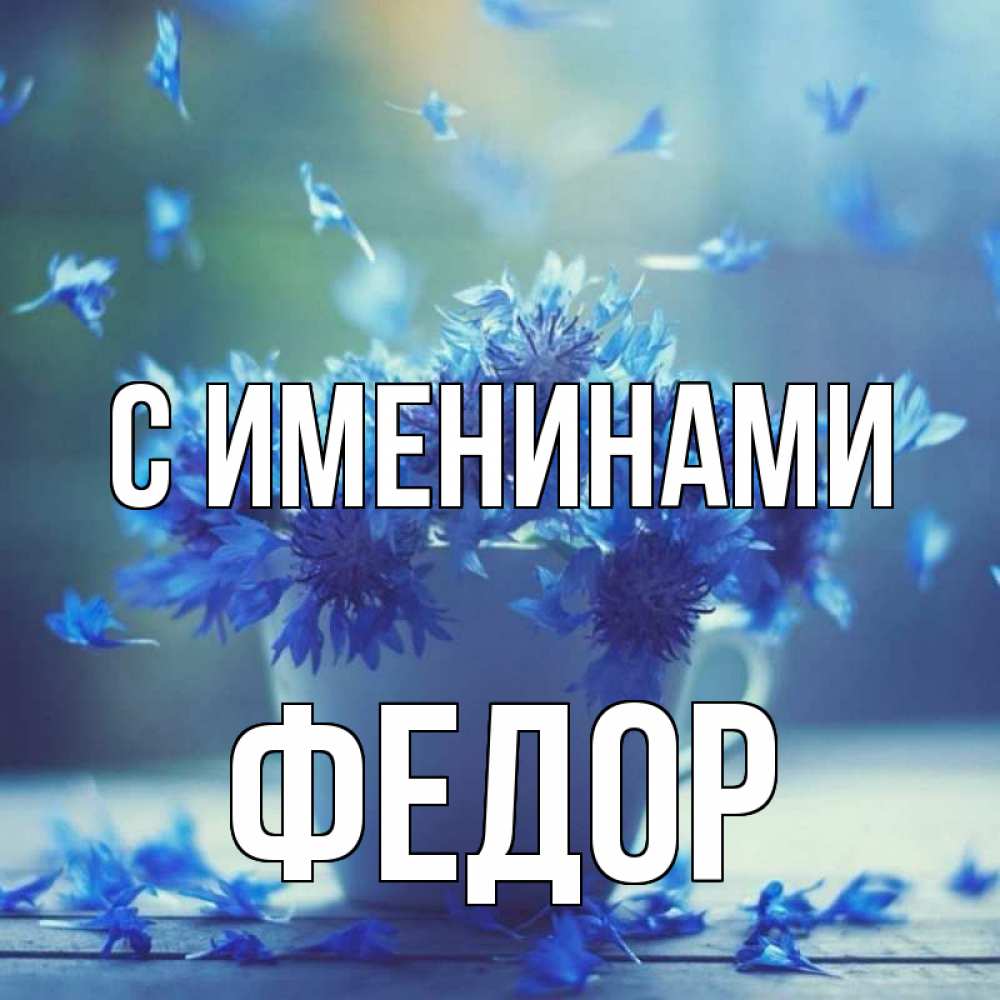 Открытка С именинами Федор. видимо эти цветы лечат простуду. кружка с зельем и цветами